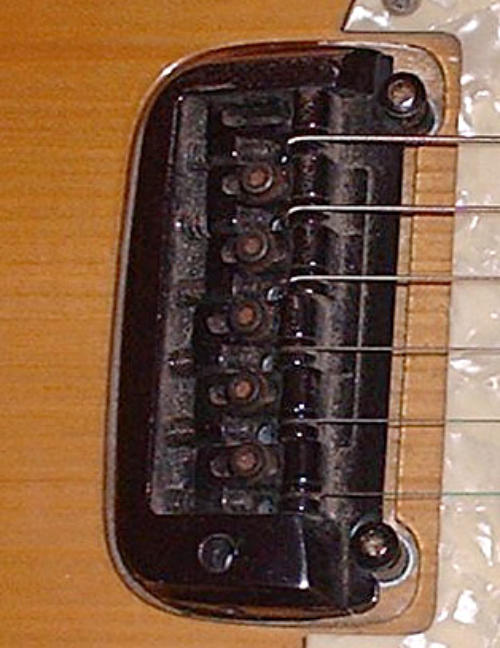 Angled side faces down into the Tremolo bar socket.